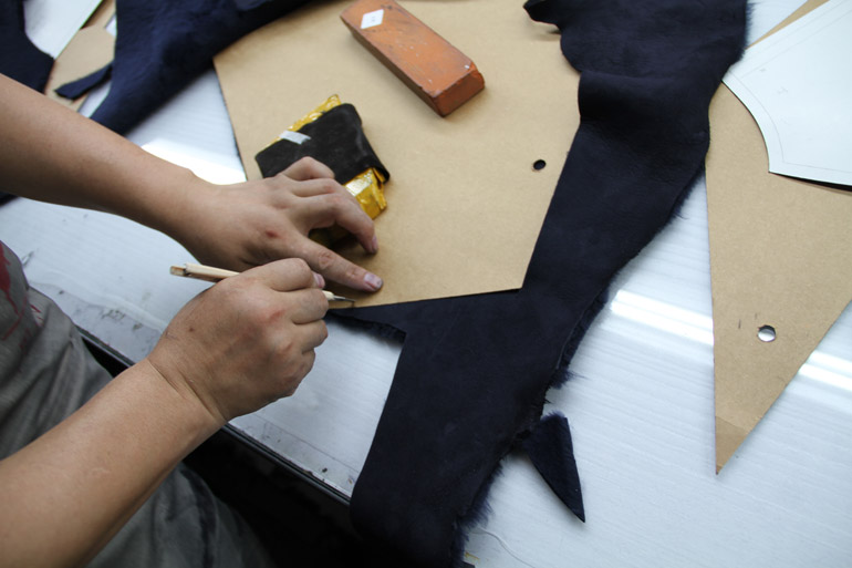 裁剪是制作完美成衣重要的第一步,裁剪師傅更是這第一步的關(guān)鍵。選取皮革,毛皮長度,皮張大小,精確的裁剪預(yù)示著完美成衣的開始。